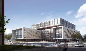 新图书馆和中国APEC研究院为一整体建筑,其面积约为58000平方米,包括图书馆、中国APEC研究院、部分文科用房,设计藏书规模450万册,阅览座位