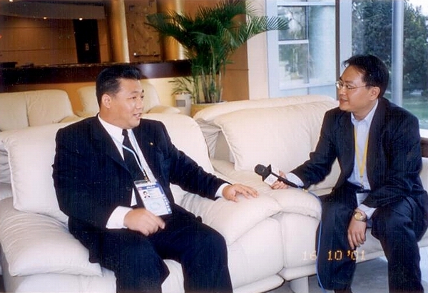 | 张力军代表在2001年APEC上海峰会期间接受央视的专访 |
