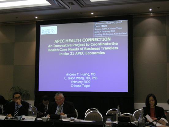 中国台北的ABAC代表提出了建立健康联络卡(APEC HEALTH CONNECTION)的议案。由于APEC很多成员已经成功申请了APEC商务旅行卡,他们建议可以把个人的身体状况填写在APEC商务旅行卡的后面,以简化出行手续。