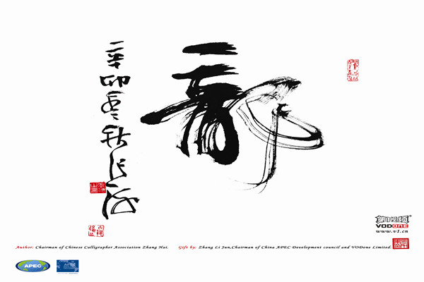 中国书法家协会主席张海先生应中国APEC发展理事会邀请,欣然题做“龙”字书法由中国APEC发展理事会制作成绢质丝巾礼品,将代表中国APEC发展理事会赠送给参加2011年在美国夏威夷举办的APEC领导人非正式会议和APEC CEO峰会的各成员体领导人和世界500强代表。