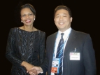 美国国务卿赖斯在APEC釜山峰会同张力军理事长合影